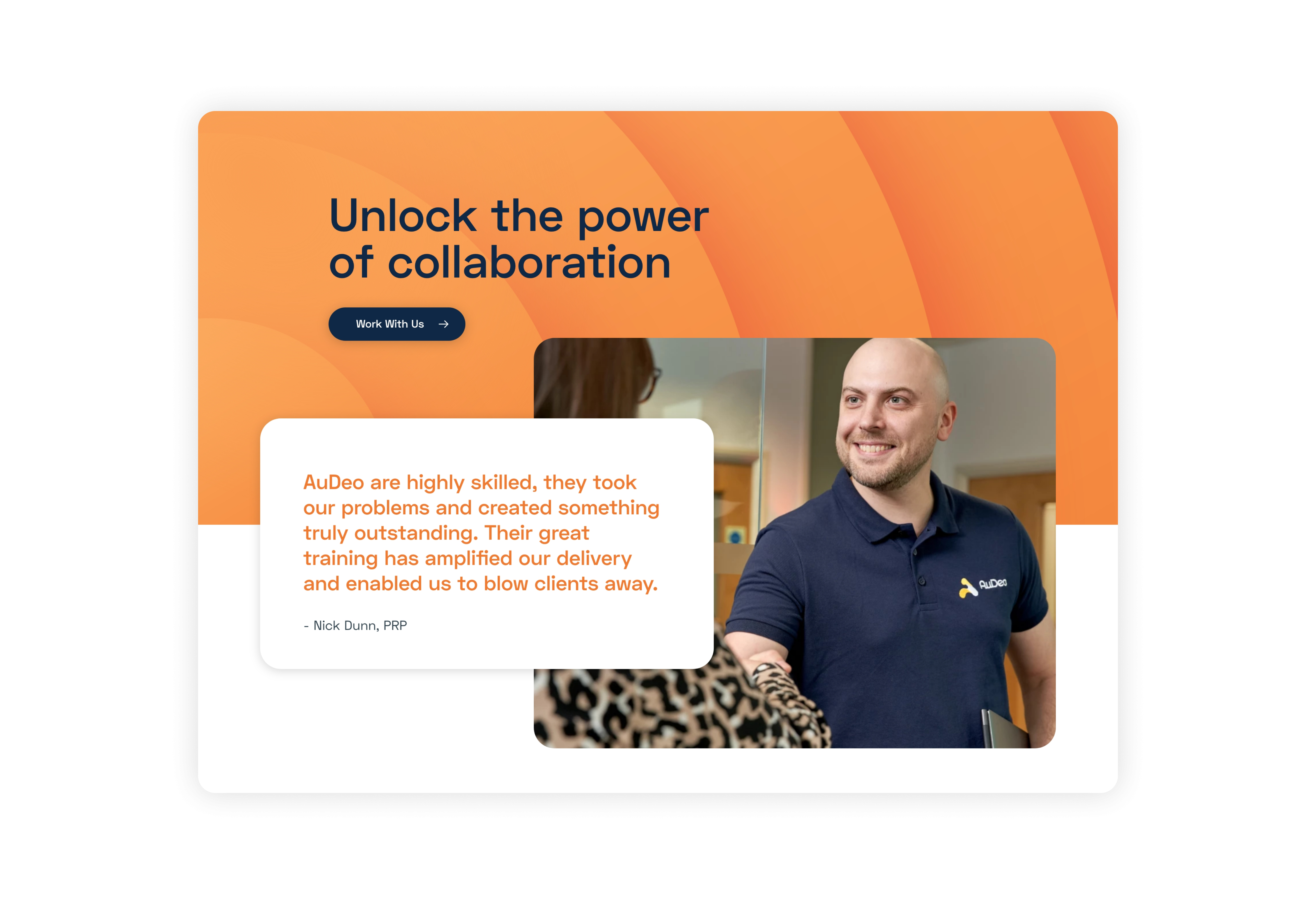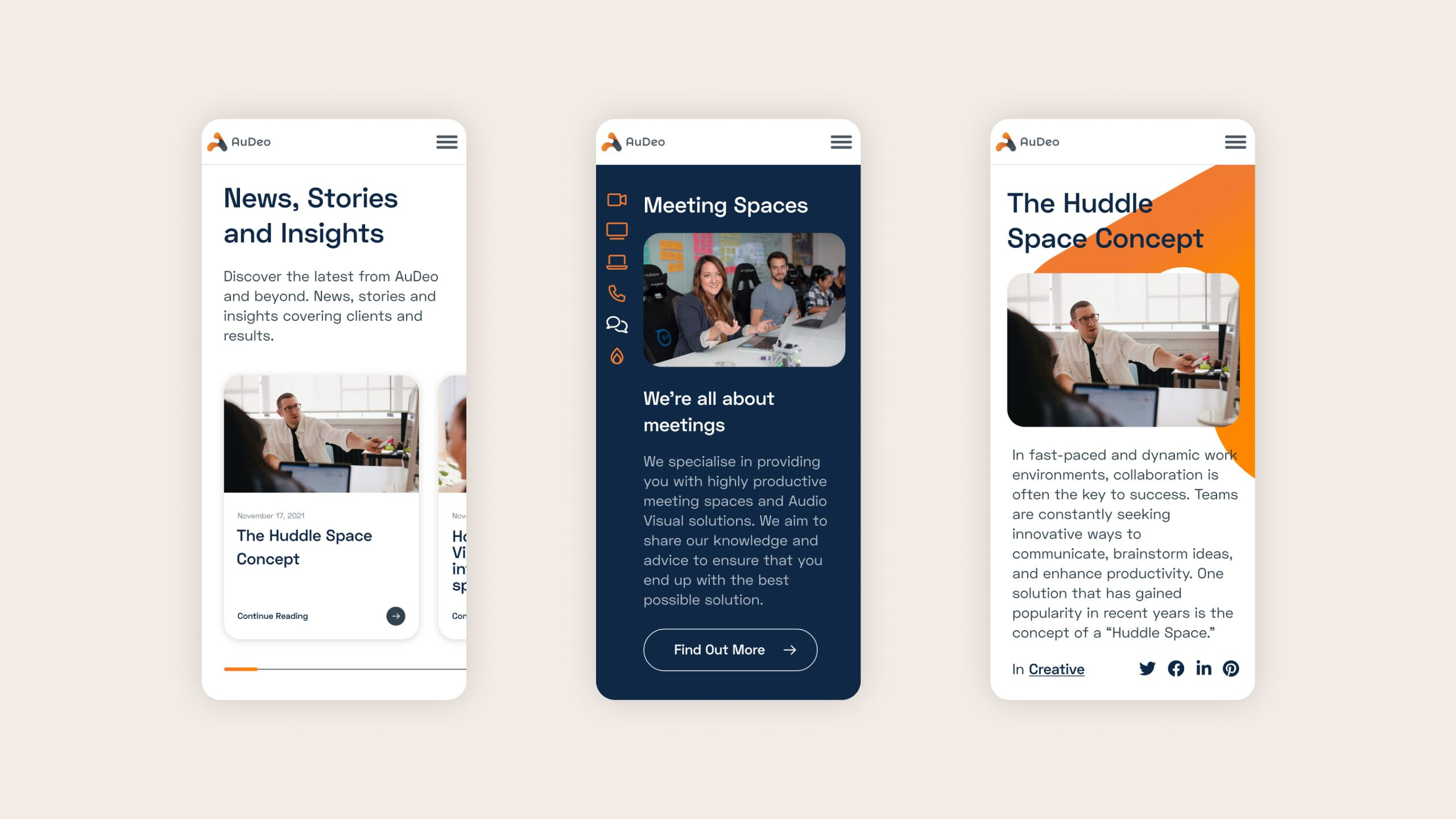 Storytelling formed the base of our design strategy. By leaning into AuDeo’s team and the relationship they have with their customers we were able to create a compelling way to communicate through the website. Arranging content strategically, combining the functional benefits with the non-tangible value of their experiences through imagery and video.