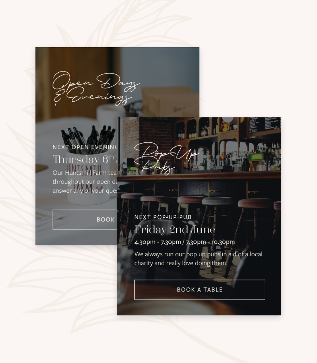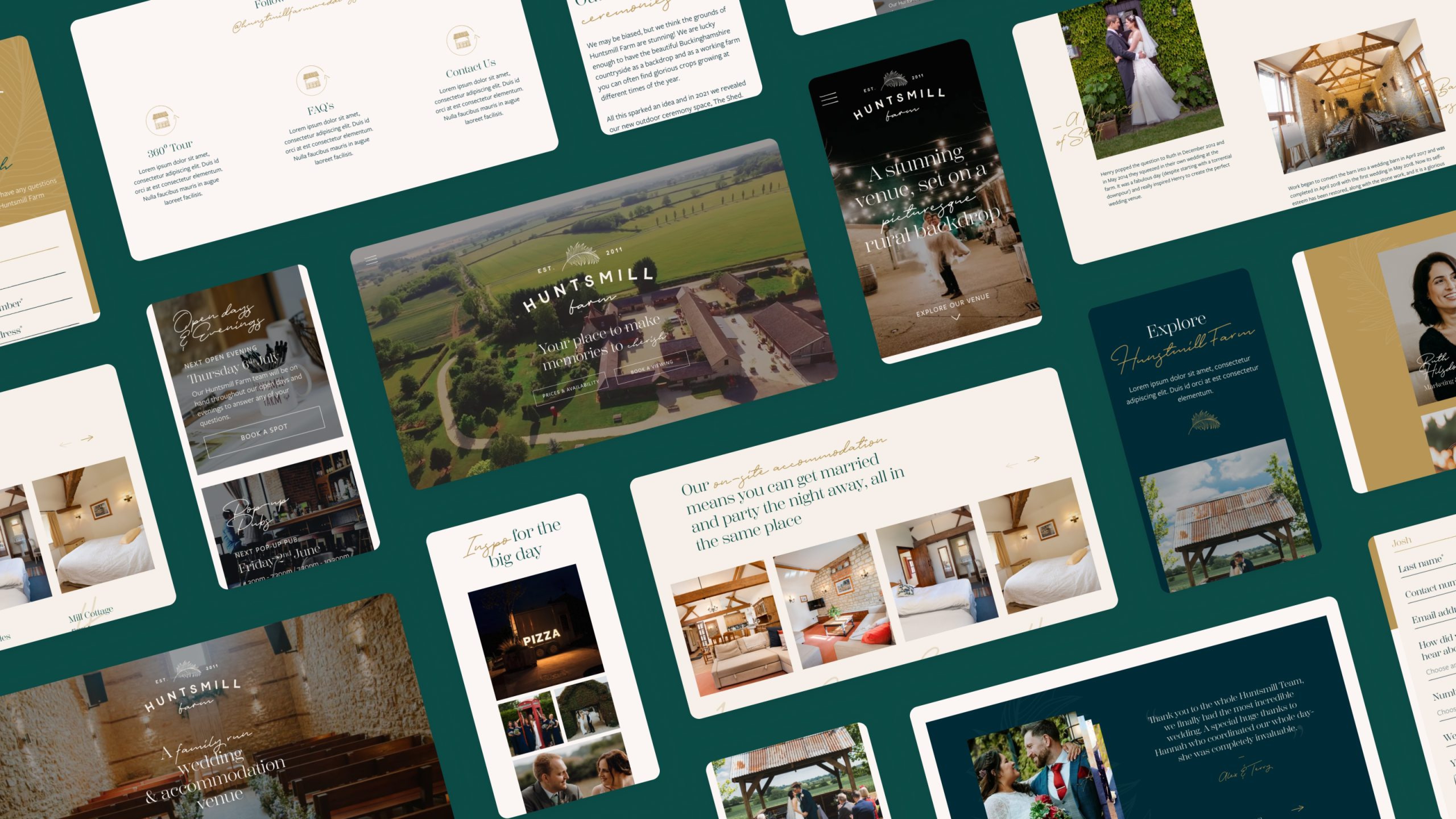 Huntsmill were keen on a chic bridal catalogue look, so we gave the whole site a makeover. The result? A mix of modern design that showcases the romantic setting like a charm.